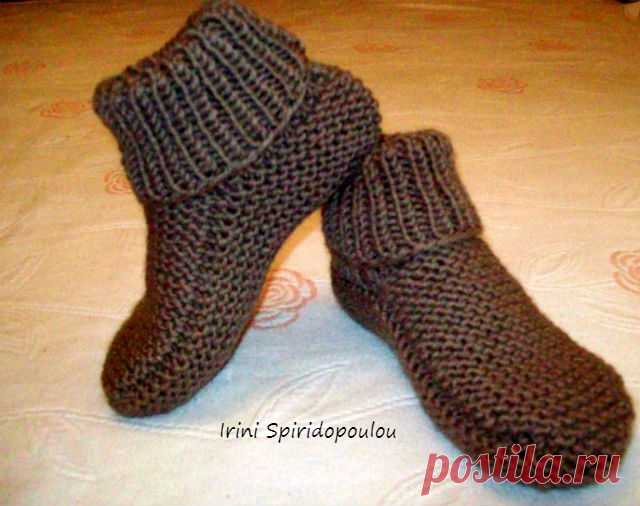 Домашние следки спицами. Простые тапочки спицами без швов на подошве.