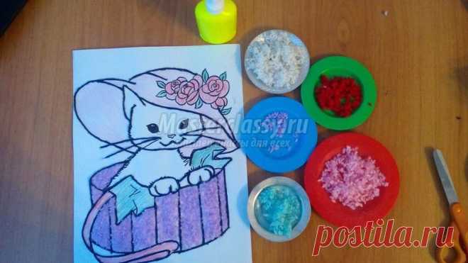 Аппликация из пряжи «Котенок в коробке». Мастер класс