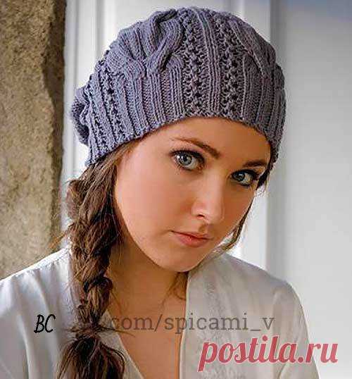 Теплая шапка спицами//Василиса