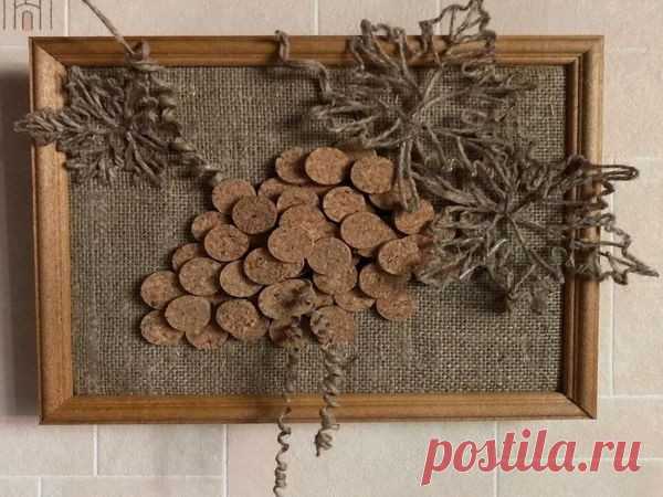 Картина из винных пробок, джутовой верёвки и мешковины Картина из винных пробок, джутовой верёвки и мешковиныСейчас в интернете можно найти большое количество поделок из винных пробок, из них делают вазы, подставки под горячее картины и так далее. Поделки из винных пробок отлично смотрятся на кухне и в прихожей, ну конечно всё зависит от того...