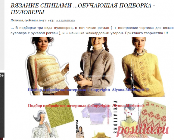 Отличное описание для вязания реглана-чтоб не давило в горло, не тянуло подмышки...