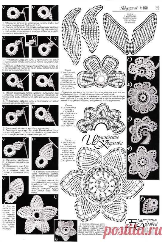 Irish lace pattern Как вязать листик - ирландское кружево Урок 312