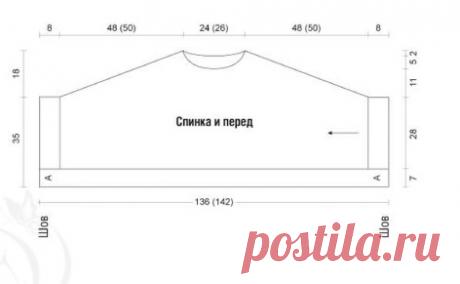Финальные измерения бюста: 104 (110) 116 (124) 130 (142) см.