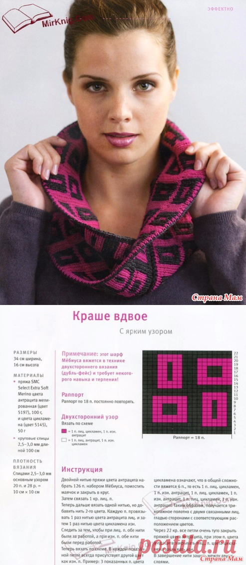 Шарф-петля графическим узором в технике дубль-фейс - Жаккард - Страна Мам