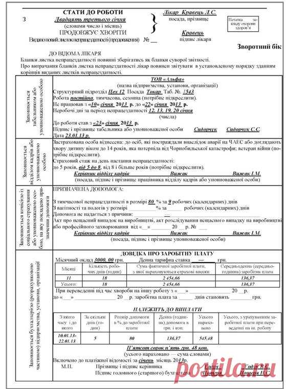 Графік відпусток працівників, Листок непрацездатності, Заповнення листка непрацездатності в медичному закладі - Бухгалтерський та податковий облік: Первинні документи та порядок їх заповнення - Навчальні матеріали онлайн
