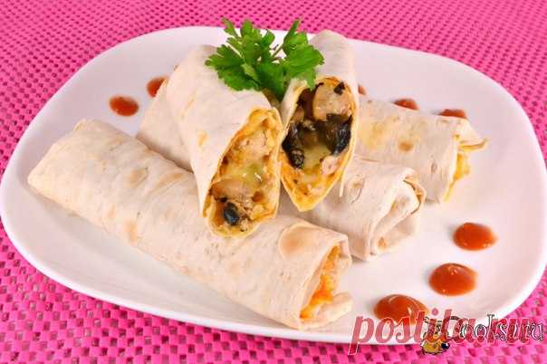 Рулеты из лаваша с курицей, грибами и сыром в микроволновке Рулеты из лаваша с курицей, грибами и сыром в микроволновке - еще один вариант вкуснейшей закуски быстрого приготовления. С появлением микроволновки проблемы с покупкой уличной еды моим сыном отпали, я готовлю все сама. Сын доволен, а я спокойна за качество продуктов. И конечно же - ну очень вкусно получается!
