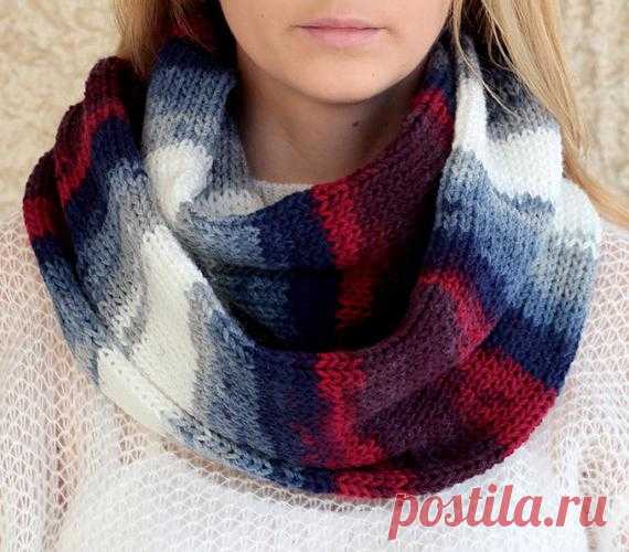 Для снуда наберите обычным способом 120 петель на круговые спицы № 4, и вяжите 10 рядов резинкой 2*2. Далее узор, который полная импровизация.