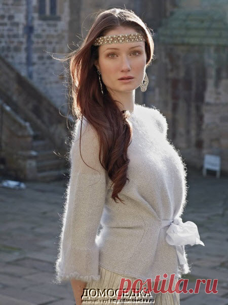 Симпатичный пуловер, связанный сочетанием «кос» и ажурного узора – беспроигрышный вариант.