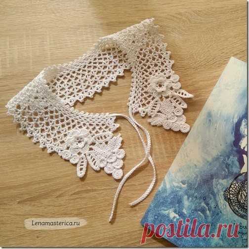 Вязаный воротничок с элементами ирландского кружева - станет украшением даже самого простого платья.