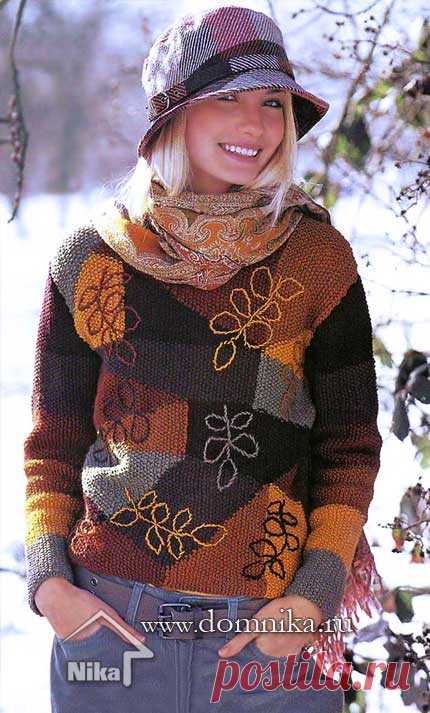 Пуловер с норвежскими узорами связанный поперёк. - Жаккард - Страна Мам