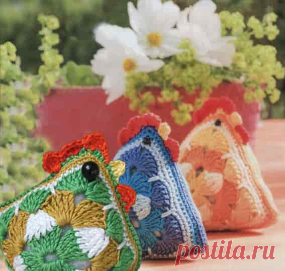 Бабушкины куры| Сундучок-хомячок Пошаговое описание вязания крючком пасхальных сувениров в виде курицы. Используются два бабушкиных разноцветных ярких квадрата для создания объемной курицы.