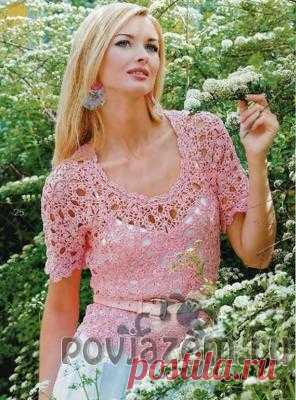 Пуловер с кружевным узором вязаный крючком. Pullover with lace pattern crocheted |