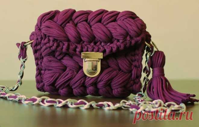 Сумка из трикотажной пряжи крючком - схемы и мастер-классы