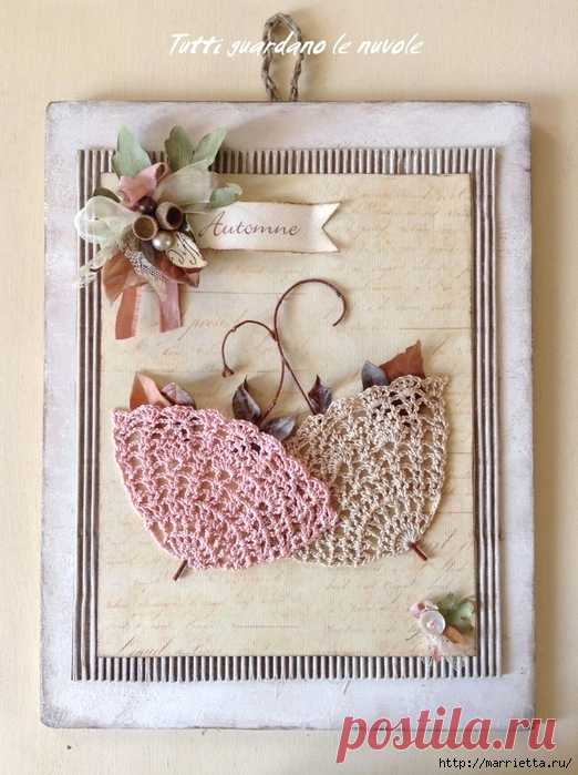 Открытка с вязаными зонтиками в ретро-стиле. Скрапбукинг