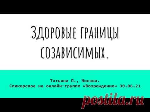 Здоровые границы созависимых. Татьяна П. Москва. Спикерское на онлайн-группе «Возрождение» 30.06.21