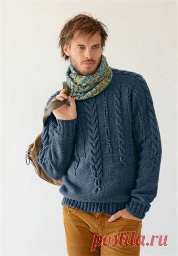 Для осенне-зимнего сезона. Мужской объемный джемпер с узором из кос, от Gedifra. Спицы