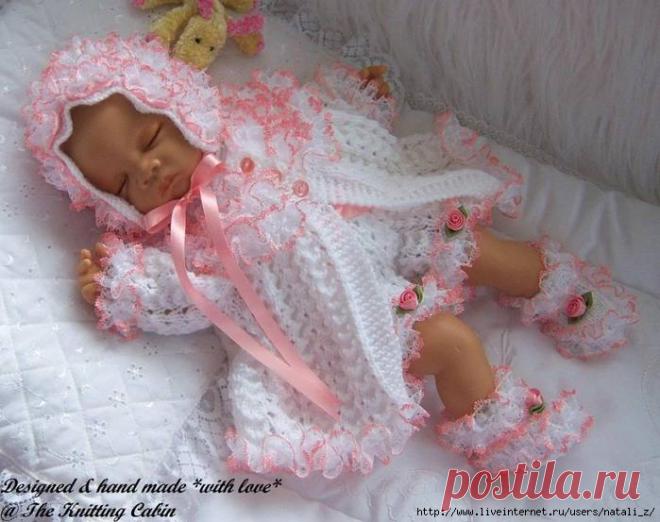 Бело-розовый костюм для малышки | Вязание для девочек | Вязание спицами и крючком. Схемы вязания.