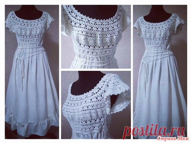 Платье - сарафан, выполнено в комбинированном стиле ткань +крючок из хлопка и льна. - ВЯЗАНАЯ МОДА+ ДЛЯ НЕМОДЕЛЬНЫХ ДАМ - Страна Мам