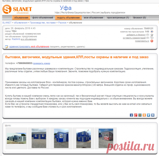 бытовки, вагончики, модульные здания,КПП,посты охраны в наличие и под заказ | Уфа | SLANET 89869600855 Радик