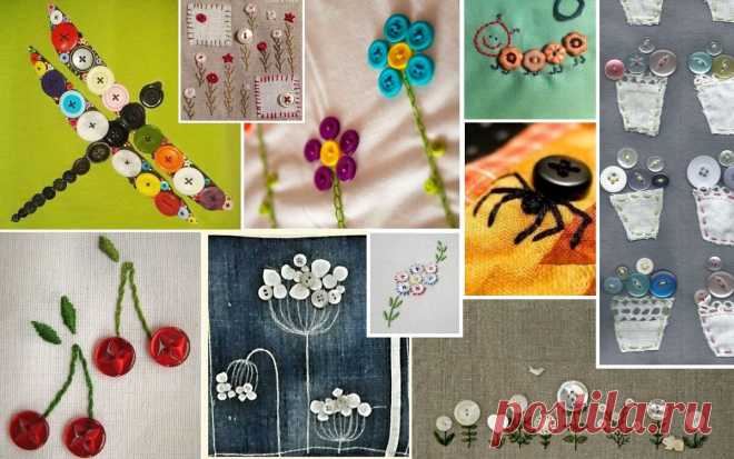 Пуговичные вышивки хоть для детских вещей, хоть для взрослых. Всё зависит от идеи. Вышила четыре штучки | Подушкины секреты | Яндекс Дзен