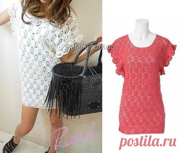 Платье-туника узором Паучки. Схемы Замечательное платье-туника, связанное крючком клетчатым узором паучки и рюшей на рукавах. Схемы прилагаются. banner_adaptivniy Вступайте в наши группы - там еще больше интересного: Замечательное