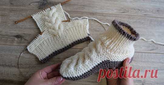 Несложные тапочки спицами , описание