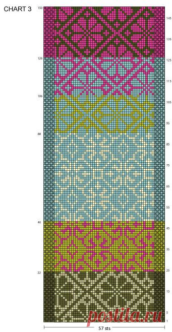 Свитер с рельефным узором и с жаккардовыми бордюрами - схема вязания спицами. Вяжем Свитеры на Verena.ru