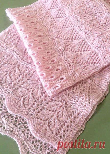Новый и оригинальный узор "Наложенные листья" спицами.