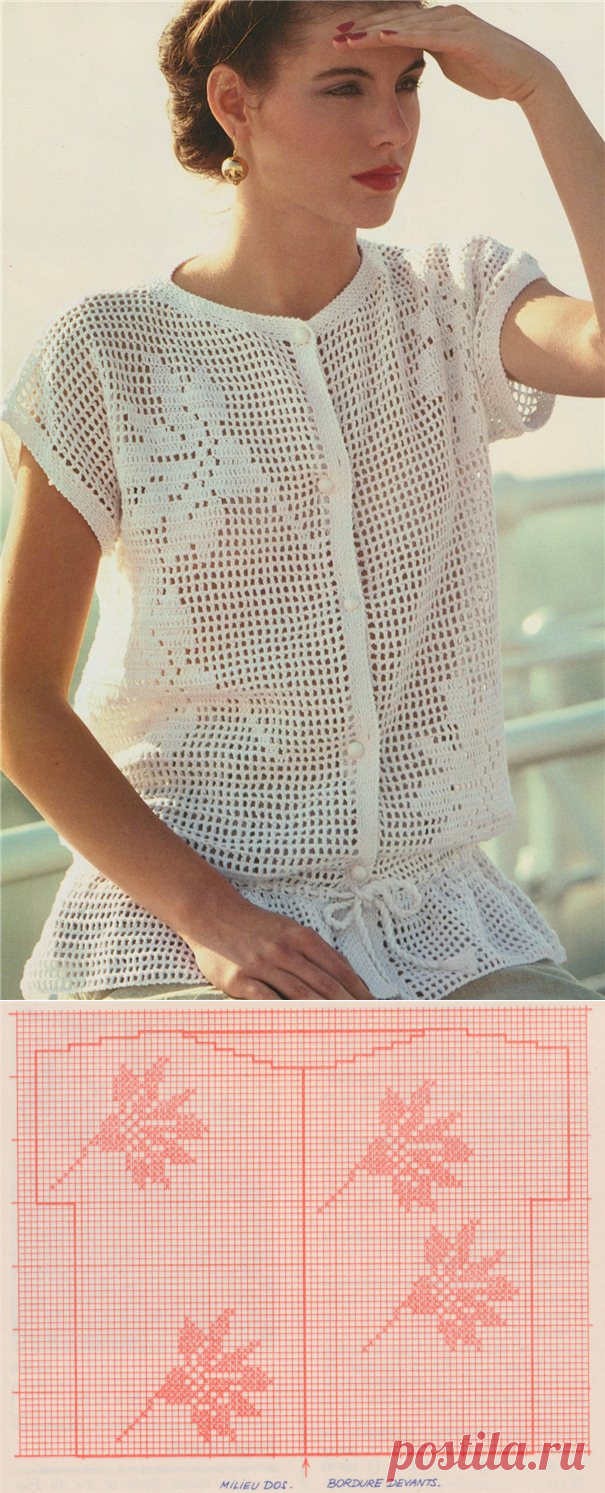 Белая кофточка с короткими рукавами крючком. Кофточка безотрывное вязание крючком |