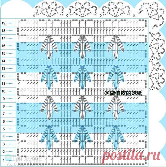 1 ряд — это воздушные петли кр. нитью (кратно 4 +2),