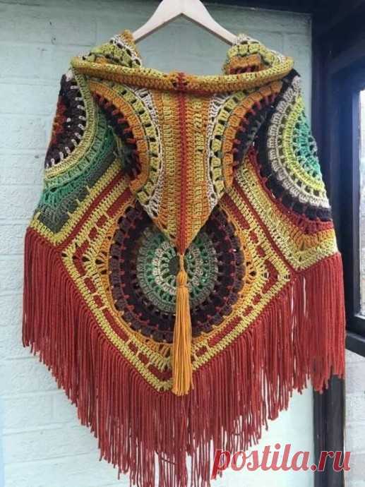 Boho Fashion 4 Square Poncho Flower Child Hippie OOAK Free Shipping Flower Child, Hippie, Bohemian fashion... Crochet Poncho. Whatever you call it, its comfortable and fun. This piece had a mind of its own, coming together a row at a time in a Stream of Consciousness way, making it one of a kind. Wear it Two Ways, Straight in front (Square), or Pointed (Diamond) in front. With the Square front, you have a Boat neck, and with the Diamond you have a V neck. Bright Colors of...