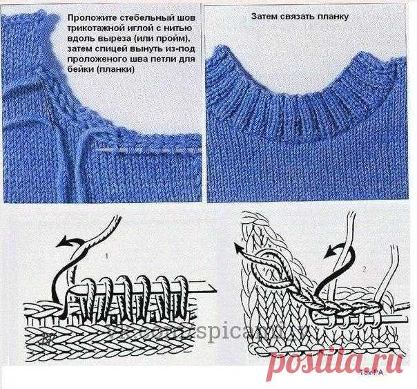 Имитация пришивной горловины при вязании сверху спицами.