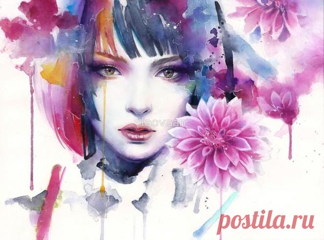 Яркие акварельные девушки художника Laovaan