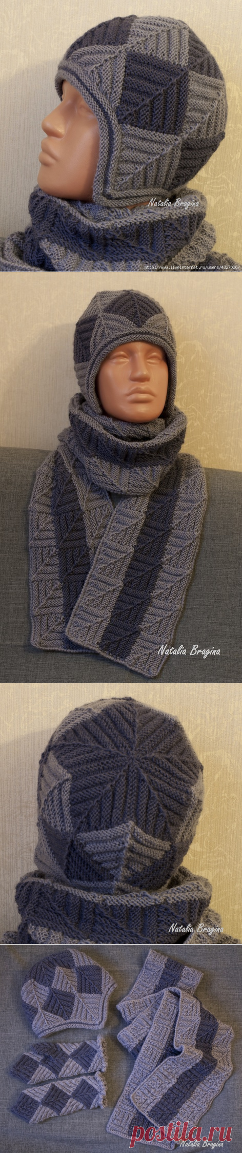 Зимний комплект спицами в технике пэчворк.