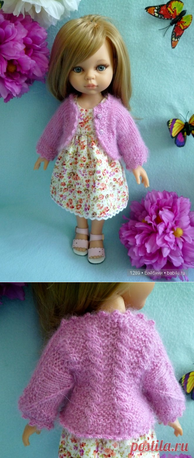 Вяжем курточку с капюшоном для Барби, тильдочек, текстильных и интерьерных кукол Вообще-то я вяжу на кукол, но мои знакомые используют эти курточки и для других куколок. В вязании используются ниточки 'Нарцисс' (100 г - 395 м, 100% хлопок), 'Вegonia' (50 г - 169 м, 100% хлопок) или другие с такой же толщиной нити, спицы № 2,5, крючок №1,5 или №2, 3 пуговички; основная вязка - носочная; в начале и в конце ряда вяжем планку для застежки - 1 кр, 2 л, ...