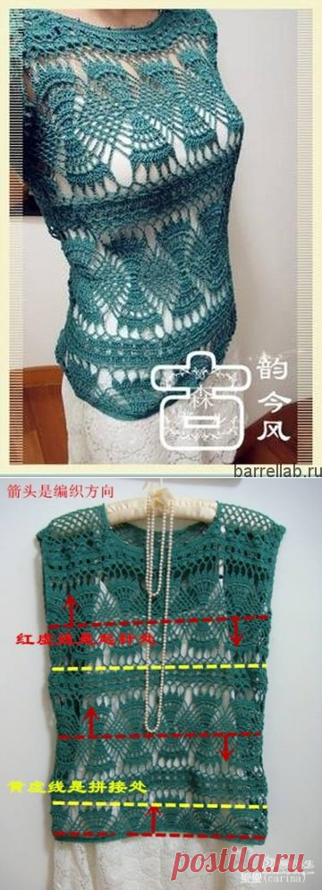 Пуловер ажурный крючком со схемами. Пуловер для лета узором ананас.