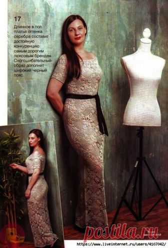 Длинное ажурное платье крючком схемы. Вязаные вечерние платья крючком