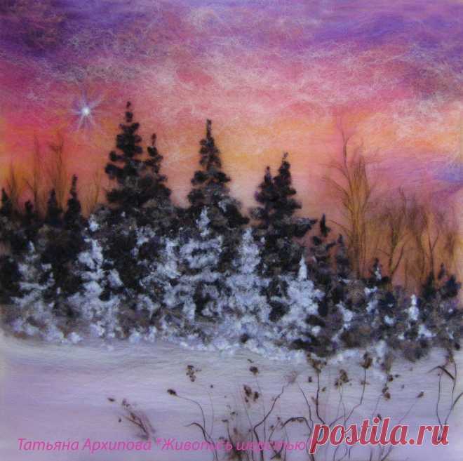 Живопись шерстью. Мастер-класс "Зимнее утро"