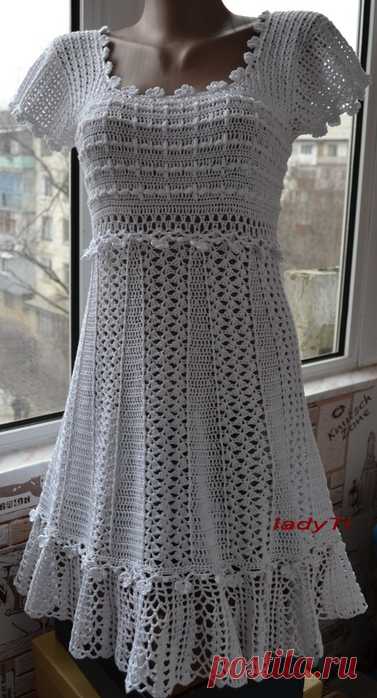 Платье крючком с круглой кокеткой+ схемы (Вязание крючком) – Журнал Вдохновение Рукодельницы