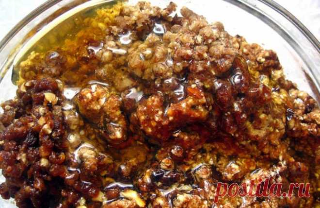 Смешайте по одному стакану молотой гречневой крупы, пропущенных через мясорубку грецких орехов и меда в эмалированной (абсолютно чистой) посуде и переложите в стеклянную банку. Один раз в неделю за целый день съешьте этот состав, не принимая больше никакой пищи, кроме воды. Сделайте так шесть раз, т. е. шесть недель. Затем через месяц повторите лечение. Уже после первого курса зоб уменьшится, а после второго болезнь оставит вас. Проверьтесь...