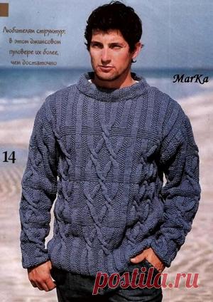 Мужской пуловер джинсового цвета вязаный спицами 6 | ✺❁сайт ЧУДО-клубок ❣ ❂✺Размеры: 48/50 Вам потребуется: 800 г пряжи Trachtenwolle (63% шерсти, 37% полиакрила, 185 м/50 г). Спицы и круговые спицы № 6. Жемч. узор: чередовать 1 ❂ ►►➤6 000 ✿моделей вязания ❣❣❣ 70 000 узоров►►Заходите❣❣ %