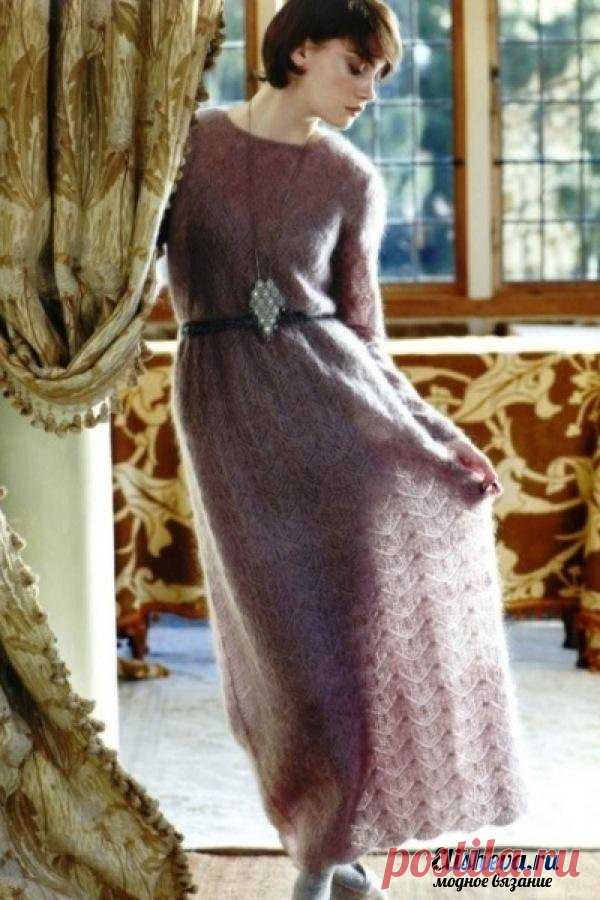 Романтическое платье в пол из мохера. Вязаное спицами