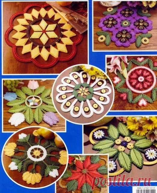 posavasos "flor" y tazas de té, bordado en la tecnología bargello.