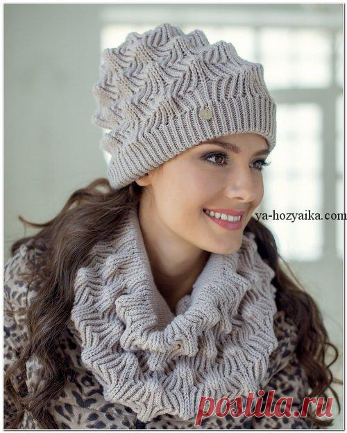 Комплект: шапка и снуд красивым узором спицами. Шапка landre Элиза спицами мастер класс