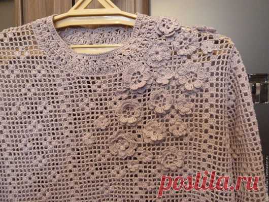 Купить Ажурная летняя кофточка светло-серая крючком - серый, цветочный, нарядная кофта