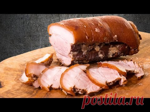 Такой рулет можно приготовить менее, чем за 2 часа, но тогда он получится рыхлым. Обязательно дайте ему полностью остыть в полученном рассоле и только тогда сливайте бульон и дайте подсохнуть. Грудинку нужно предварительно подготовить - срезать шку...