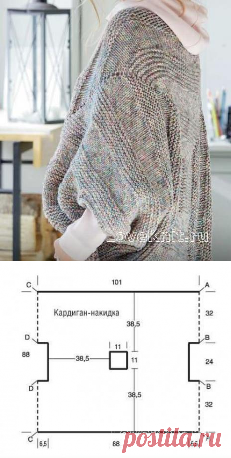Кардиган-накидка простым узором схема спицами » Люблю Вязать