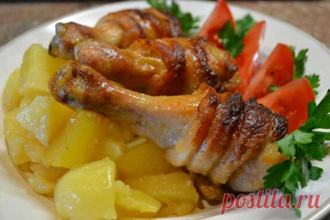 Палочка-выручалочка при нежданных гостях — Куриные голени, запечённые с грибами и овощами