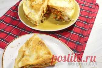Быстрый пирог из лаваша. Очень вкусный, быстрый пирог из лаваша, куриной грудки и овощей