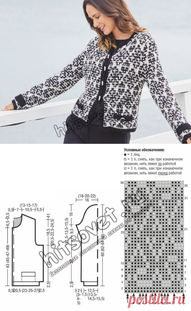 ЭЛЕГАНТНЫЙ ЖАКЕТ ИЗ ДВУХЦВЕТНОГО УЗОРА И С ОТДЕЛКОЙ КРЮЧКОМ. Вязание спицами и крючком: Дневник группы «ВЯЖЕМ ПО ОПИСАНИЮ»: Группы - женская социальная сеть myJulia.ru